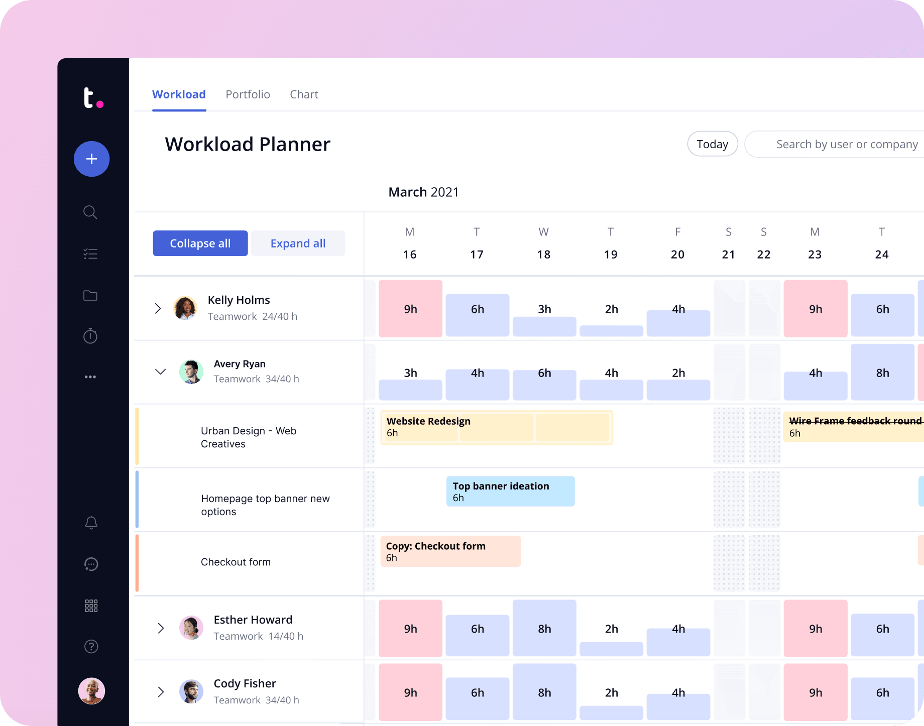 With Teamwork.com, you’ll get a complete picture of everyone’s workload and availability at-a-glance–so you can avoid bottlenecks, achieve on-time project delivery, and have appropriately busy staff.