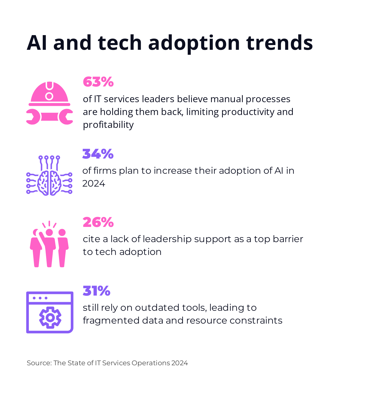 The journey toward the automation surge is filled with leadership lag and integration anxiety. Without the backing of key decision-makers, efforts to integrate AI and automation can falter, leaving businesses stuck in the past.